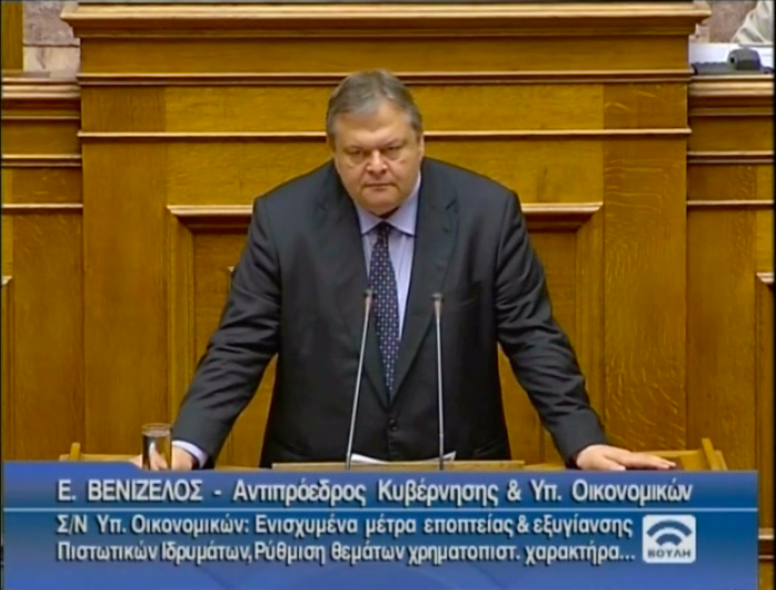 Παρεμβάσεις Αντιπροέδρου της Κυβέρνησης και Υπουργού Οικονομικών, κ. Ευάγγελου Βενιζέλου, στη συζήτηση στην Ολομέλεια της Βουλής για το σχέδιο νόμου του Υπουργείου Οικονομικών: "Ενισχυμένα μέτρα εποπτείας και εξυγίνασης πιστωτικών ιδρυμάτων, ρύθμιση θεμάτων χρηματοπιστωτικού χαρακτήρα"