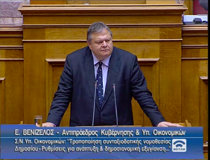Σχόλιο του Αντιπροέδρου της Κυβέρνησης και Υπουργού Οικονομικών κ. Ευ. Βενιζέλου στη συνεδρίαση της Ολομέλειας