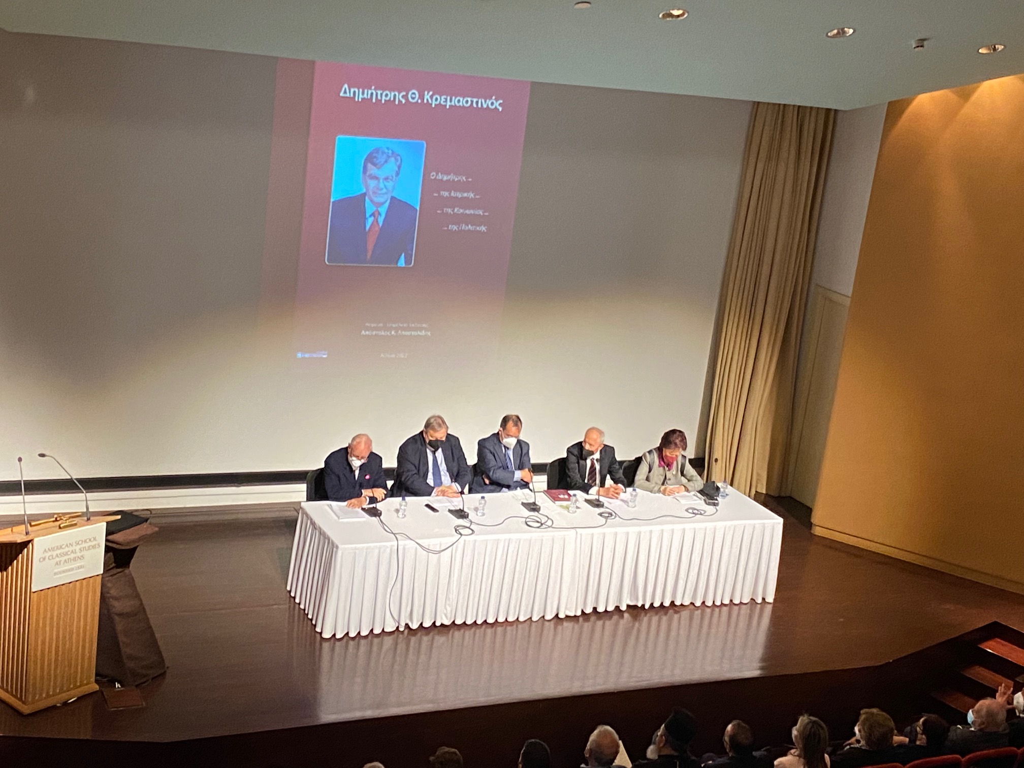 Ομιλία Ευάγγελου Βενιζέλου στην παρουσίαση του βιβλίου του Απόστολου Κ. Αποστολίδη «Δημήτρης Θ. Κρεμαστινός, Ο Δημήτρης... της Ιατρικής... της Κοινωνίας... της Πολιτικής» στο Αμφιθέατρο (Cotsen Hall) της Αμερικανικής Σχολής Κλασικών Σπουδών (4.5.2022)