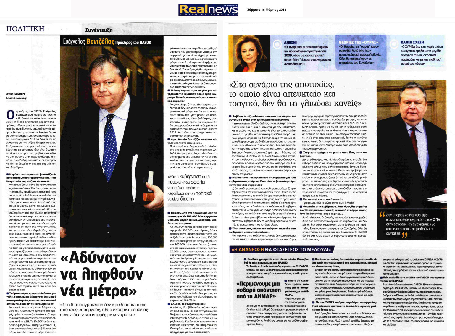 Είπα ότι δεν θα αφήσω κανένα προσωπικό θέμα και ιδίως κανένα θέμα που αφορά εμένα να εμποδίσει μια πορεία η οποία μπορεί να δημιουργήσει ευεργετική δυναμική και νια τις προοδευτικές δυνάμεις και νια τη χώρα. Γιατί πιστεύω ότι εν δυνάμει το σχήμα της Κεντροαριστεράς είναι εκλογικά πρώτο. Οι προοδευτικές, υπεύθυνες και φιλοευρωηάίκές δυνάμεις θα είναι πρώτη δύναμη. Εμείς κάνουμε την πρόταση και περιμένουμε μια σοβαρή απάντηση.