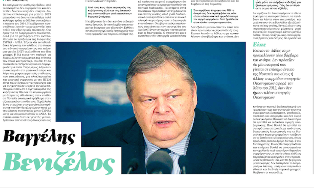 Συνέντευξη Ευ. Βενιζέλου στην εφημερίδα Τα Νέα και στον δημοσιογράφο Διονύση Νασόπουλο