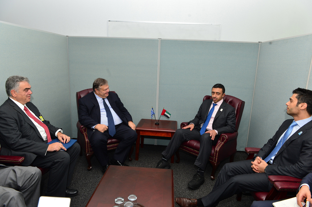 Ο Αντιπρόεδρος της Κυβέρνησης και Υπουργός Εξωτερικών Ευάγγελος Βενιζέλος είχε, χθες, Δευτέρα 23 Σεπτεμβρίου, συνάντηση, στο πλαίσιο της Υπουργικής Εβδομάδας της 68ης Γενικής Συνέλευσης του Ο.Η.Ε, με τον Υπουργό Εξωτερικών των Ηνωμένων Αραβικών Εμιράτων, Σεΐχη Abdullah Bin Zayed Al Nahyan.