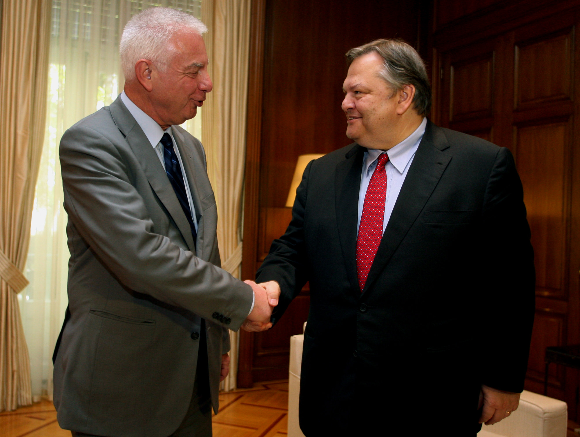 Ο Πρόεδρος του ΠΑΣΟΚ, Ευάγγελος Βενιζέλος, μετά τη συνάντησή του με τον υπηρεσιακό Πρωθυπουργό,