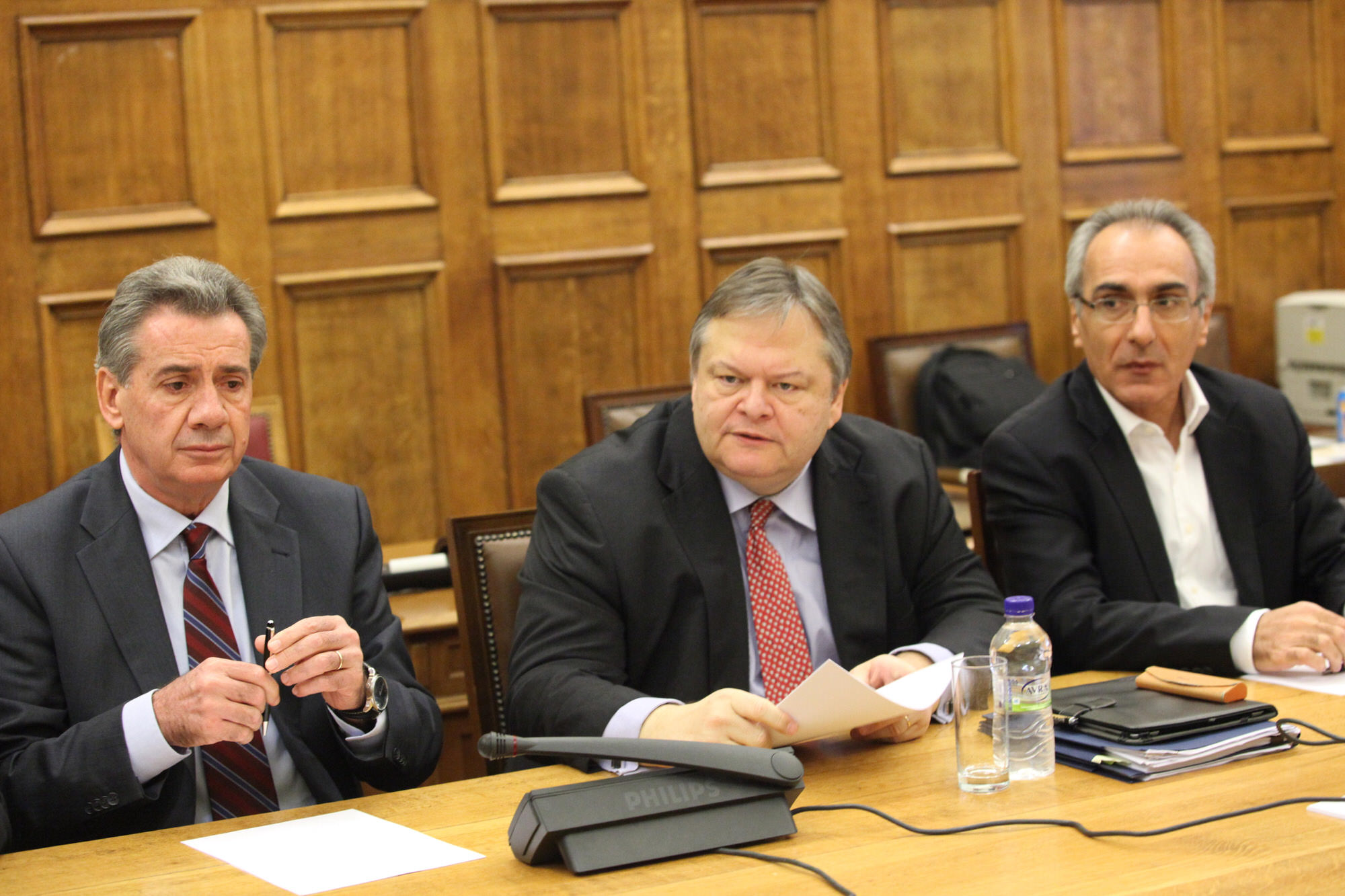 Αυτό επιτείνει την ύφεση που είναι ούτως ή άλλως βαθιά από το 2008, δημιουργεί αναμφίβολα προβλήματα στην πραγματική οικονομία, αλλά αυτό δεν είναι μια επιλογή οικειοθελής, είναι μια επιλογή αναγκαστική. Μια επιλογή που έγινε επειδή αυτό το πνεύμα κυριαρχεί στους δανειστές μας: και στην Ευρωπαϊκή Ένωση και στο Διεθνές Νομισματικό Ταμείο και στην Ευρωπαϊκή Κεντρική Τράπεζα και στις διεθνείς αγορές και εν πάση περιπτώσει έπρεπε να γίνει κάποια στιγμή μια στάθμιση: τι είναι αυτό που προέχει. Αυτό που προέχει προφανώς είναι η μη δημιουργία πιστωτικού γεγονότος, η μη πτώχευση, η αποφυγή της χρεοκοπίας, η διατήρηση της χώρας μέσα στο ευρώ. Αυτό έχει ένα κόστος. Το κόστος αυτό είναι καταγεγραμμένο στη συνείδηση και τα βιώματα των πολιτών και σε εμάς όλους που έχουμε πάρει πολύ δύσκολες αποφάσεις.