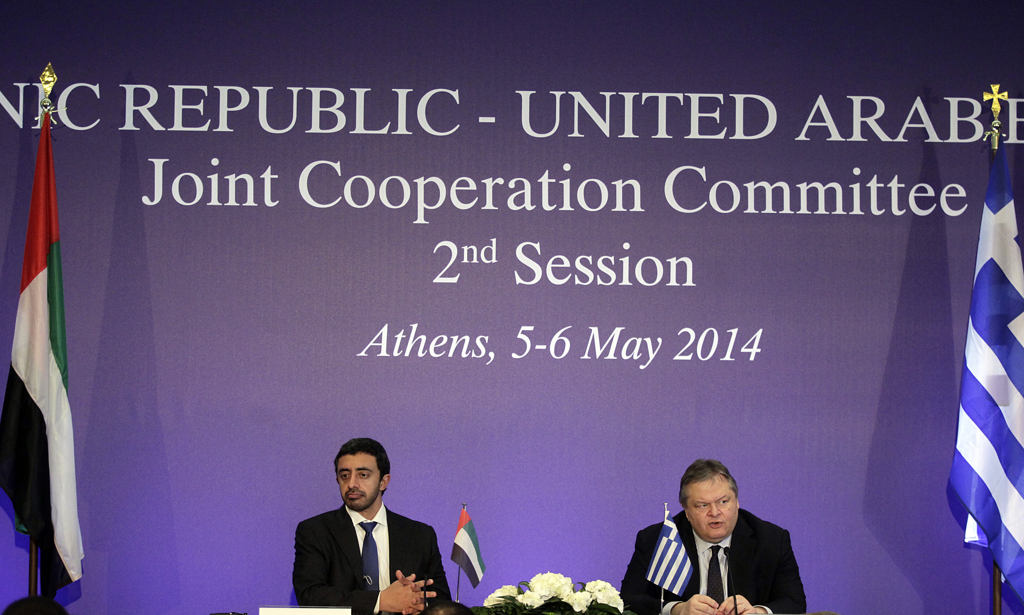 Κοινές δηλώσεις του Αντιπροέδρου της Κυβέρνησης και ΥπΕξ Ευ. Βενιζέλου και του ΥπΕξ των Η.Α.Ε. Σεΐχη Abdullah Bin Zayed Al Nahyan μετά τη συνάντησή τους και την ολοκλήρωση της 2ης Μικτής Διυπουργικής Επιτροπής Ελλάδας – Η.Α.Ε.
