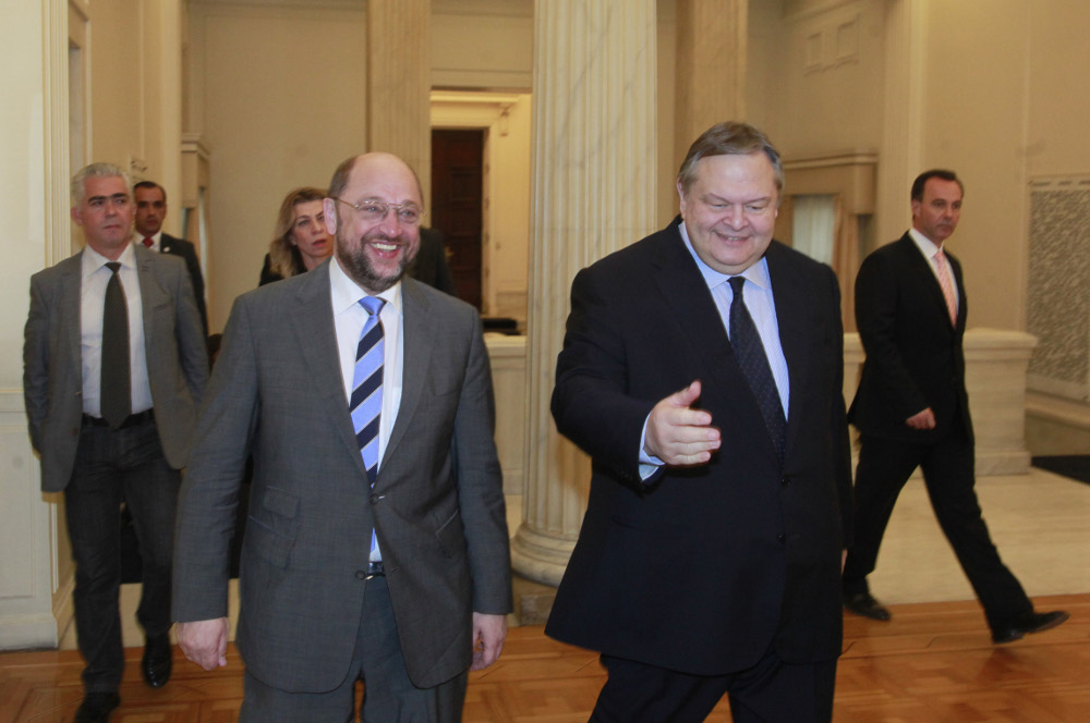 Ευ. Βενιζέλος: Υποδέχομαι, όπως πάντα, με ιδιαίτερη χαρά τον Πρόεδρο του Ευρωπαϊκού Κοινοβουλίου, τον αγαπητό φίλο και συναγωνιστή Martin Schulz.