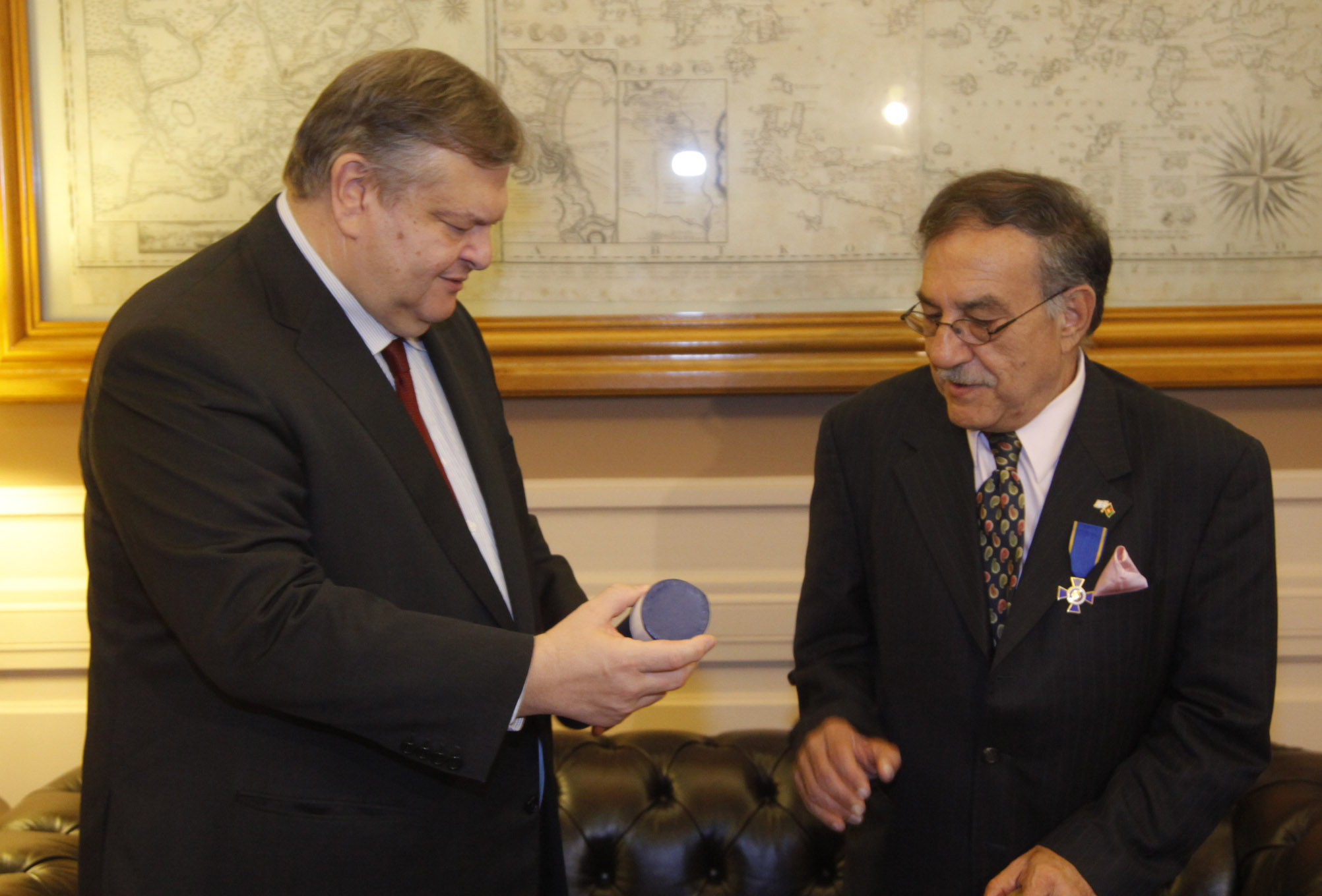 Τελετή επίδοσης Παρασήμου στον πρώην Αναπληρωτή Υπουργό Πολιτισμού του Αφγανιστάν, Omar Sultan, από τον Αντιπρόεδρο της Κυβέρνησης και ΥΠΕΞ Ευ. Βενιζέλο