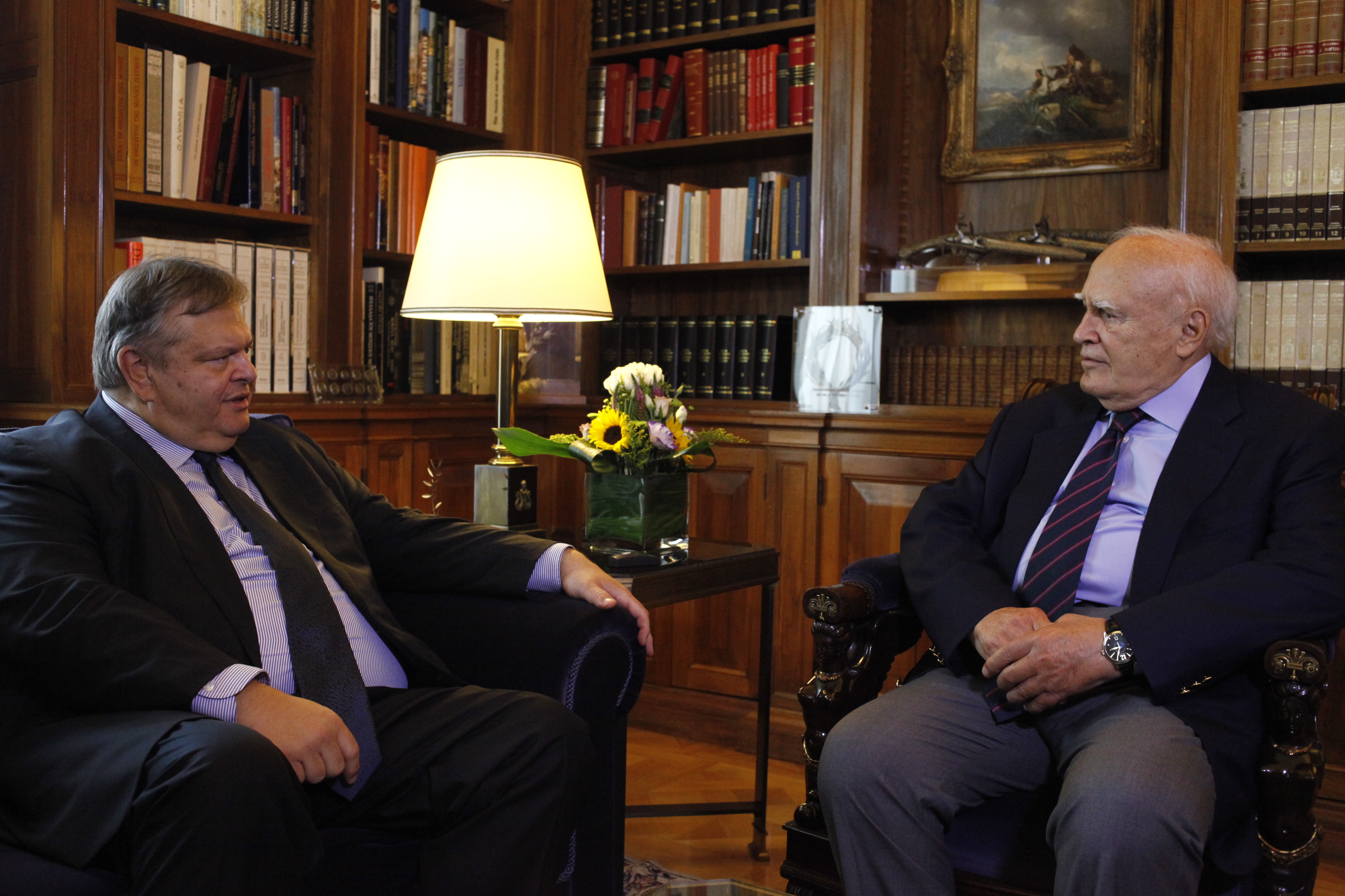 Συνάντηση Προέδρου της Δημοκρατίας κ. Καρόλου Παπούλια με τον Αντιπρόεδρο της Κυβέρνησης και Υπουργό Εξωτερικών Ευ. Βενιζέλο στο Προεδρικό Μέγαρο