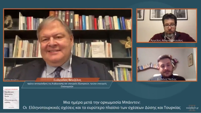 Α. Αθανασόπουλος: Η εκδήλωσή μας δράττεται από την έκδοση του βιβλίου του κ. Βενιζέλου με τίτλο «Οριοθέτηση θαλασσίων ζωνών και ελληνοτουρκικές σχέσεις». Ο τίτλος της εκδήλωσής μας είναι πιο ευρύς, «Μία ημέρα μετά την ορκωμοσία Biden, οι ελληνοτουρκικές σχέσεις και το ευρύτερο πλαίσιο των σχέσεων Δύσης και Τουρκίας». Νομίζω χθες ήταν μία πολύ σημαντική ημέρα, όπως συζητούσαμε και πριν από λίγο. Μία νέα αμερικανική προεδρία με πολλές προσδοκίες από πολλές πλευρές και φυσικά πολλές προσδοκίες, πιστεύω, και από αρκετούς τόσο στην Ευρώπη όσο και στην Ελλάδα σε σχέση με ένα θέμα πολύ κοντά σε εμάς που είναι το μέλλον των ευρωτουρκικών, δυτικοτουρκικών και ελληνοτουρκικών σχέσεων. Βασίλη, θα ήθελα και τη δική σου εισαγωγική τοποθέτηση επ’ αυτού, νομίζω ότι το πλέγμα της συζήτησης είναι πολύ ευρύ, πριν αρχίσουμε να συζητάμε και να πιαστούμε αρχικά από τη χθεσινή ορκωμοσία του Joe Biden και το τι μπορεί να σημαίνει αυτή για την περιοχή μας.