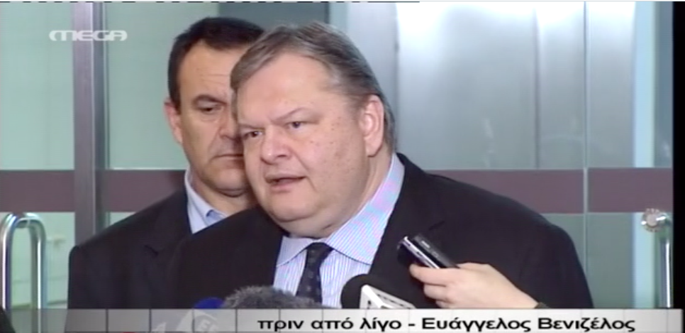 Μετά την ολοκλήρωση της αποψινής διαπραγμάτευσης με την τρόικα και πριν την αναχώρησή του για τη σύσκεψη με τον Πρωθυπουργό, ο Αντιπρόεδρος της Κυβέρνησης και Υπουργός Οικονομικών κ. Ευάγγελος Βενιζέλος έκανε την ακόλουθη δήλωση: