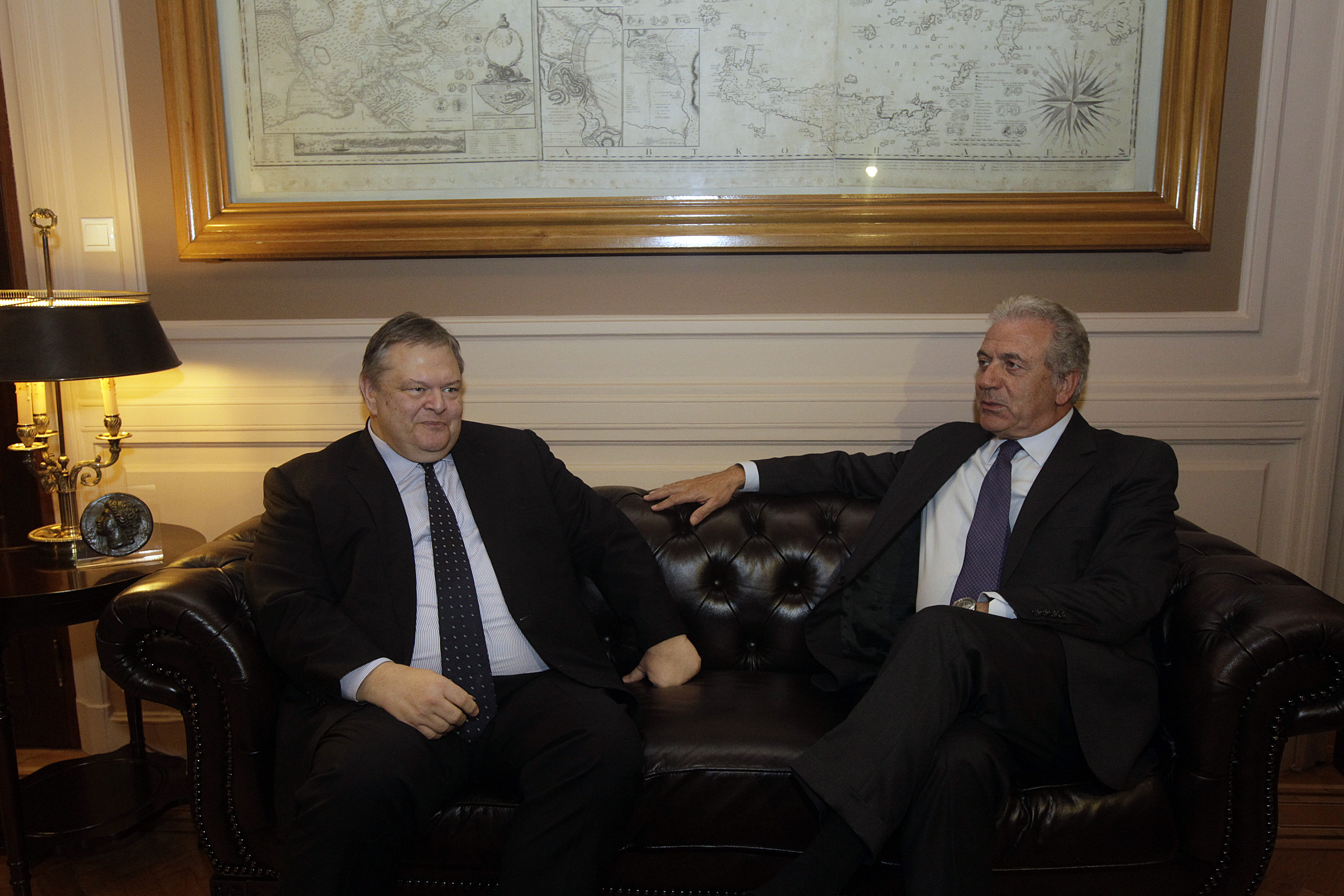 ΕΥ. ΒΕΝΙΖΕΛΟΣ: Ο Υπουργός Εθνικής Άμυνας, ο κ. Δημήτρης Αβραμόπουλος, με επισκέφτηκε σήμερα για να με χαιρετήσει, καθώς αναλαμβάνει τα καθήκοντά του ως Επίτροπος στην Ευρωπαϊκή Ένωση, αρμόδιος για ένα εξαιρετικά σημαντικό χαρτοφυλάκιο. Ένα χαρτοφυλάκιο που ανήκει και στις εθνικές μας προτεραιότητες. Όπως είχα την ευκαιρία να πω στον αγαπητό φίλο και συνάδελφο, Δημήτρη Αβραμόπουλο, η προσωπικότητά του, η διαδρομή του, η συγκρότησή του και η εμπειρία του, τον έχουν καταστήσει ώριμο και πανέτοιμο για να ανταποκριθεί με απόλυτη επιτυχία στις προκλήσεις της νέας του θέσης στην Ευρωπαϊκή Επιτροπή.