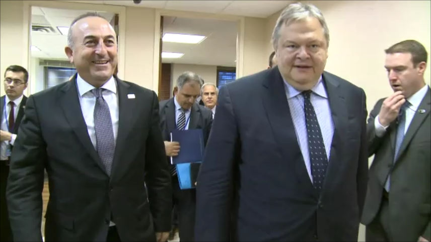 Ο Αντιπρόεδρος της Κυβέρνησης και Υπουργός Εξωτερικών, Ευάγγελος Βενιζέλος, είχε, χθες, Πέμπτη 25 Σεπτεμβρίου, συνάντηση με τον Υπουργό Εξωτερικών της Τουρκίας, Mevlüt Çavuşoğlu, στο πλαίσιο της συμμετοχής του στην Υπουργική Εβδομάδα της 69ης Γενικής Συνέλευσης του Οργανισμού Ηνωμένων Εθνών, με τον οποίο συζήτησαν θέματα διμερούς και περιφερειακού ενδιαφέροντος, εστιάζοντας στο Κυπριακό πρόβλημα και στην πορεία των ελληνοτουρκικών σχέσεων. Μετά το πέρας της συνάντησης, ο κ. Βενιζέλος προέβη στις ακόλουθες δηλώσεις: