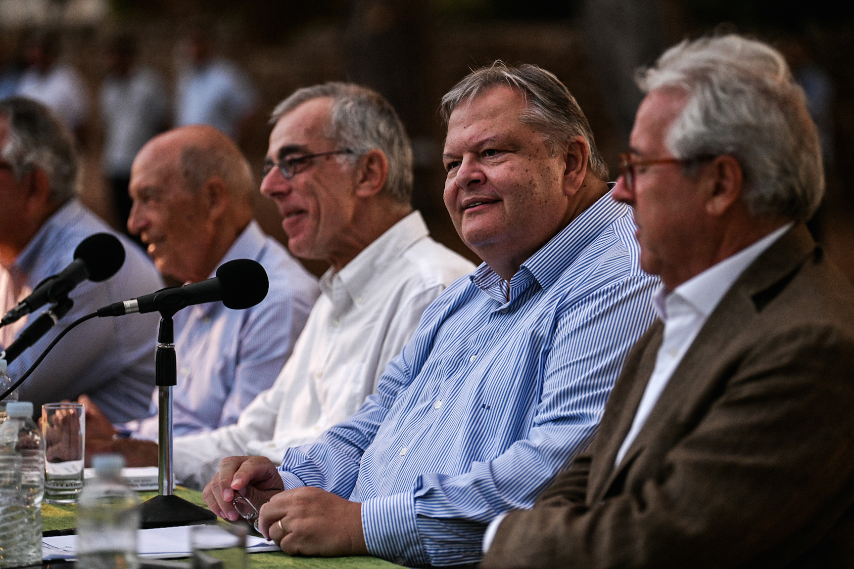 Ομιλία Ευάγγελου Βενιζέλου στην παρουσίαση του βιβλίου του Γιάννη Βούλγαρη «Ελλάδα: μία χώρα παραδόξως νεωτερική» (εκδ. ΠΟΛΙΣ) στο Κορακοχώρι, στο κτήμα Μερκούρη, με ομιλητές τον Κώστα Σημίτη και τον Νίκο Αλιβιζάτο. Την εκδήλωση συντόνισε ο Μιχάλης Μητσός